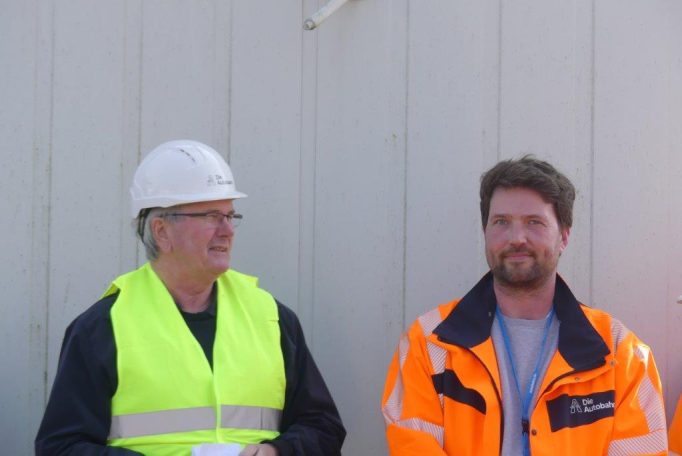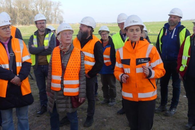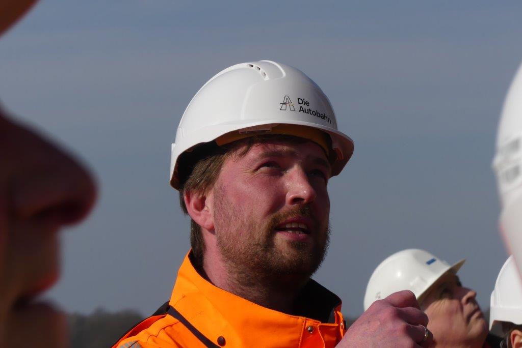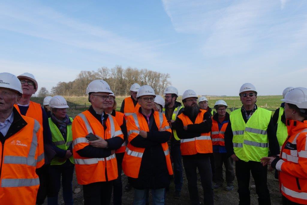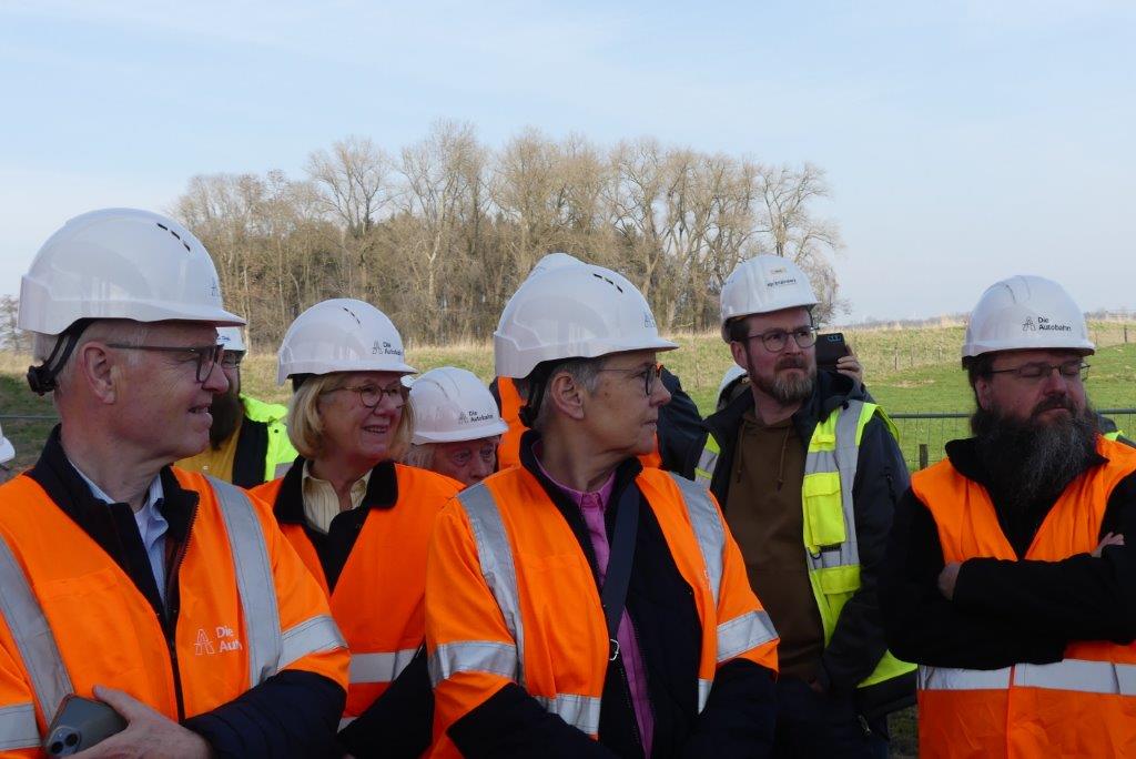 Insgesamt nahmen an der Begehung ca. 25 Personen unter der Führung der Projektleiterin, Frau Elling, teil. Es ergaben sich interessante Informationen aus der Bauabwicklung, alle aufkommenden Fragen der Anwesenden konnten von Frau Elling und ihrem Kollegen Herrn Busker, Pressesprecher der Autobahn GmbH, beantwortet werden.